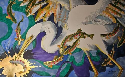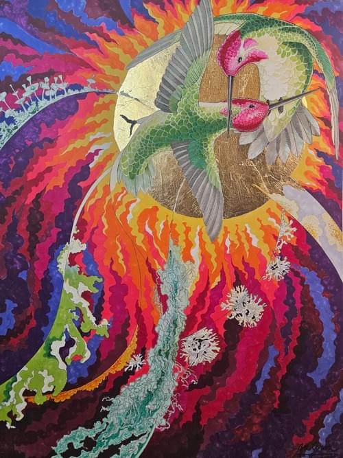 Caron’s artistic practice is steeped in science. Her father is a professor of biology at the University of Southern California, and many of her early works feature drawings of the microbial world visible through a microscope in a lab. She also pulls inspiration from years of exploring the outdoors and capturing and photographing many kinds of wildlife. Caron attended UC Berkeley for her undergraduate degree, earning a BS and BA in plant biology and integrative biology. She has lived in California for nearly 25 years, and in the California Bay Area since 2014. She strives to engage people with the web of life that sustains native ecosystems through the connective power of art. Following her graduation in 2018, she worked in developing sustainable agriculture technology while maintaining a vibrant side career in art and graphic design. However, in 2024, she left her biotech job to focus on advancing her career as a freelance artist and part time community college professor. She catalyzed the beginning of this new branch of her career through an artist in residency program at Mill Valley’s O’Hanlon Center for the Arts in August. Subsequently, she has been working as a guild member of the Artist’s Guild of San Francisco, creating public art throughout the Bay, and showing at multiple museums of art in the region. She hopes that observers will experience some of the same childlike wonder for the natural world that inspires her when they view her pieces.